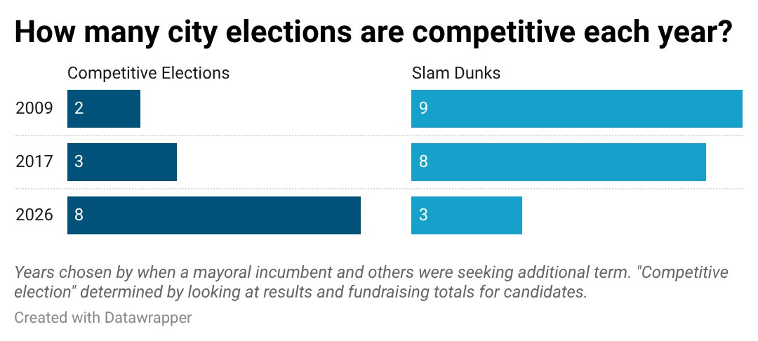 Why are city elections more competitive than they have been in decades? There are a number of factors, starting with the move in 2020 to align the city’s odd-year elections with the even-year calendar for state and federal elections. The shift significantly boosts turnout, especially among renters and younger people. Progressive groups have aggressively targeted this portion of the electorate, who were often overlooked in the past. Add in the rise of social media political marketing, and there’s more electoral engagement than there was two decades ago.